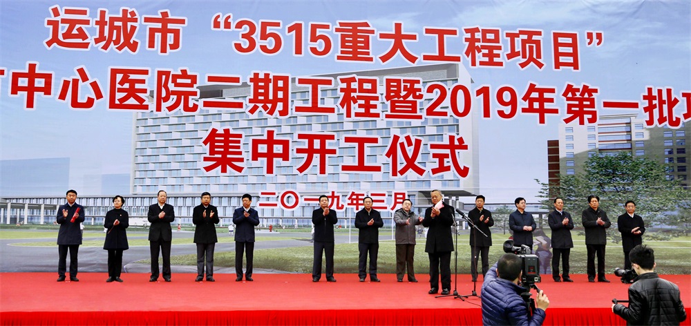 2019年3月2日上午,我公司承建的“運城市中心醫(yī)院二期工程”開工儀式隆重舉行。市委書記劉志宏等“四大班子”領導,中心醫(yī)院黨委書記、院長高萍,公司總經(jīng)理王哲波,市委市政府相關(guān)部門負責人及各縣(市、區(qū))委書記、縣(市、區(qū))長等出席開工儀式。