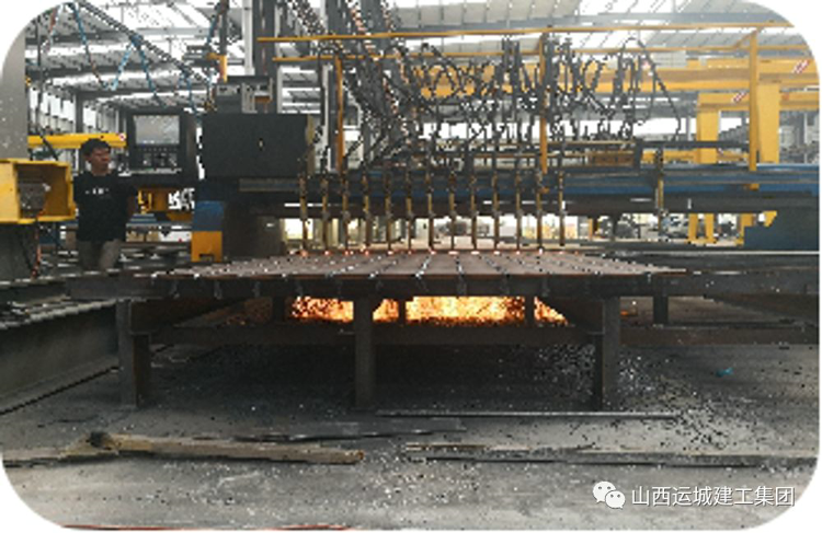 切割好的板材通過(guò)組立機(jī)兩端點(diǎn)焊初步成型為H型鋼,由輥軸輸送準(zhǔn)備進(jìn)入下道工序---組焊。